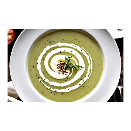Velouté de poireau et pomme de terre , déjà assaisonné prêt à être dégusté .