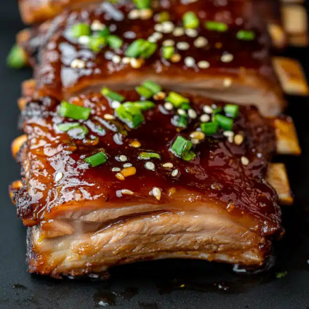 Belle pièce de travers de porc caramélisé accompagné d'une sauce